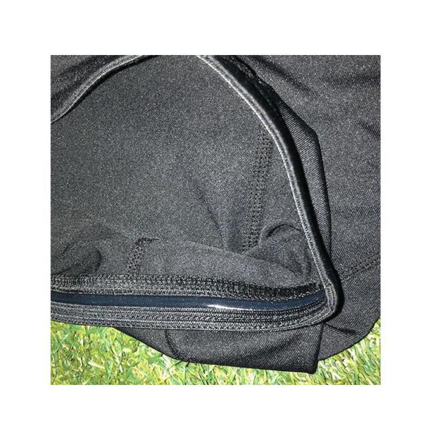 腕下のメッシュ換気パネルとウェスト内側のゴム素材で、