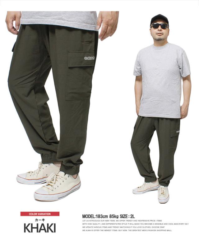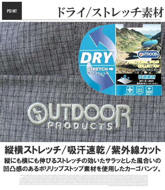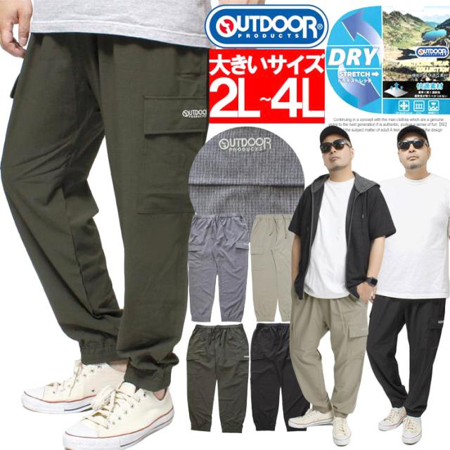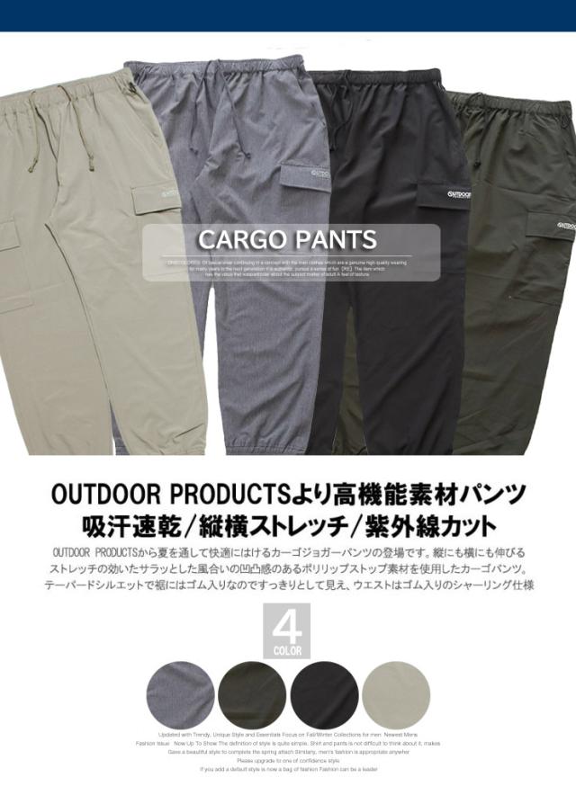 送料無料 OUTDOOR PRODUCTS(アウトドアプロダクツ) カーゴパンツ メンズ 大きいサイズ ポリリップ ストレッチ ドライ 紫外線カット ジョガーパンツ 伸縮 ウエストゴム 薄手 イージーパンツ ワークパンツ ワイドパンツ キャンプ スポーツ レジャー ワークマンプラス