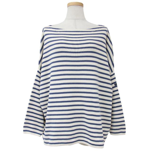 Armor lux アルモー リュックス 23区コラボ ニット コットン オフホワイト ネイビー 44(XL) ボーダー ワイド オーバーサイズ ボートネック 長袖 トップス プルオーバー ニットソー カジュアル【レディース】【中古】【K4164】