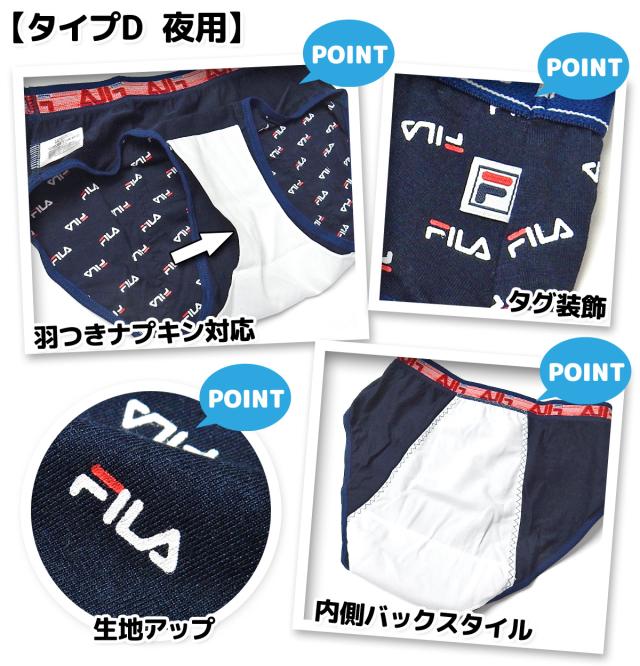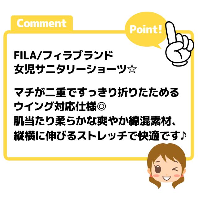 【送料無料】女児 ジュニア サニタリー ショーツ FILA/フィラ 生理用 ウイング対応 昼用 夜用 ストレッチ 綿混 下着 子供 女の子 150cm 160cm 165cm yg-2333【メール便対応】