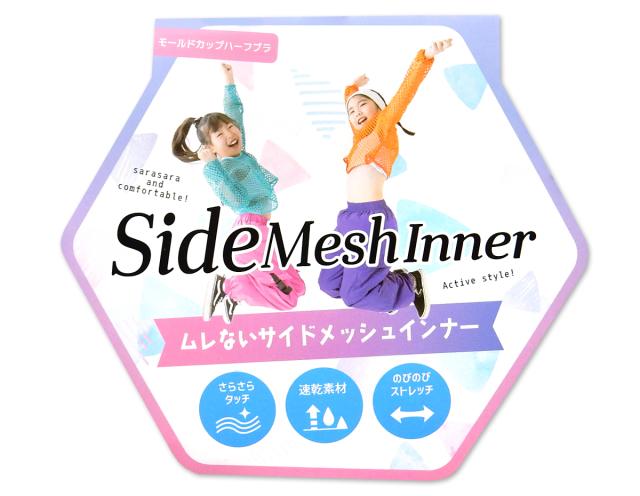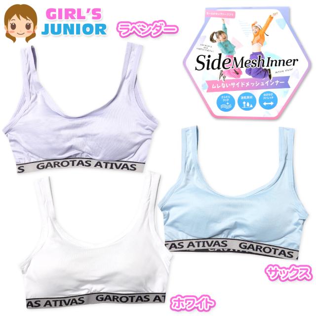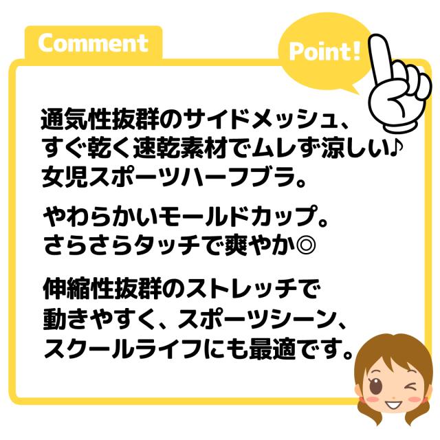 【送料無料】女児 ジュニア サイドメッシュ ハーフブラ モールドカップ 速乾 さらさらタッチ 通気性 ストレッチ 下着 子供 女の子 140cm 150cm 160cm 165cm yg-2510【メール便対応】
