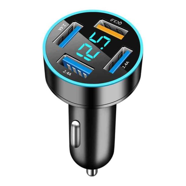 【66W/QC3.0ポート】YUGYUG シガーソケット usb シガーソケット電圧計 LEDデジタルディスプレー搭載 車usb 車載充電器 シガーソケット4連 QC3.0ポート 軽量 12〜24V車対応 シガー usb(ブラック) (4IN1-ブラック)
