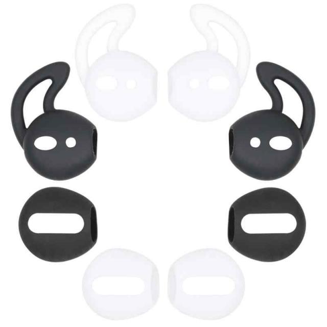 A-Focus Apple AirPods 用 イヤーフック と 「グレードアップ超薄版 付けたままケースに入って充電できる」 AirPod イヤホンカバー シリコンカバー イヤーピース シリコン素材 落下防止 フィット感向上 落ち防止 エアーポッズ エアーポッド イヤホンパッド 2種類 ホワイトとブラック 4ピースセット 4ペア入り