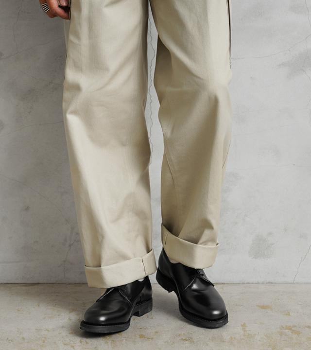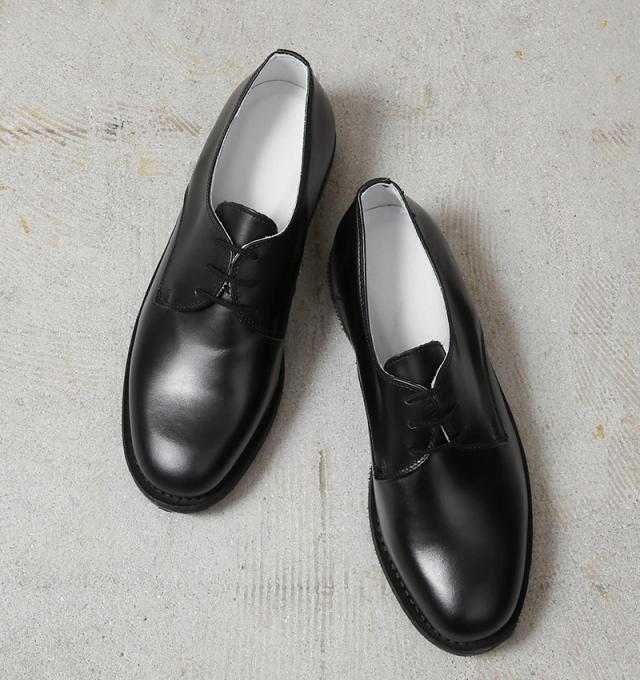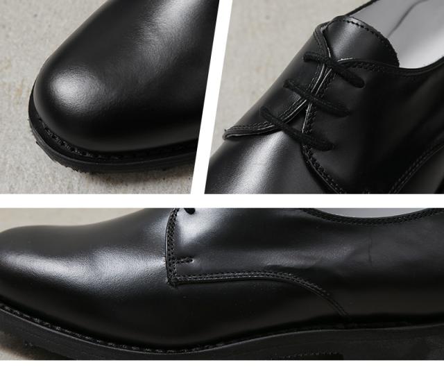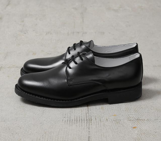 イタリア軍や警察に靴を納入し、現在もシューズブランドとして活躍するイタリアのMONTEBOVE社製。海軍支給用のレザーシューズです。とても手間がかかりミリタリーオフィサーシューズでは珍しい、耐久性・耐水性に優れたグッドイヤーウェルト製法のソールが特徴になっています。アッパーは、光沢感があり傷や汚れが付きにくく、丈夫なクロムレザー仕様。カジュアルな外羽根、プレーントゥで、ビジネスなどでも活躍する汎用性の高いダービーデザインとなっています。