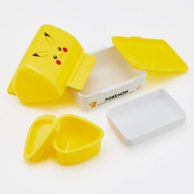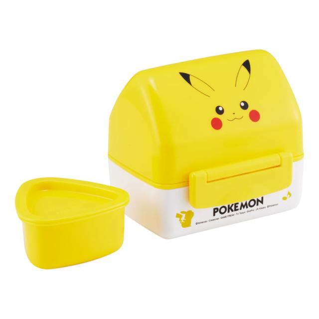 ピカチュウの三角屋根のランチボックスです。付属の押し型で作った三角おにぎりを、中皿に3コ並べられます。下段には、おかずやふりかけなどを入れられます。おにぎりは食べやすいので、小さなお子様のお弁当やピクニックなどにおすすめです。