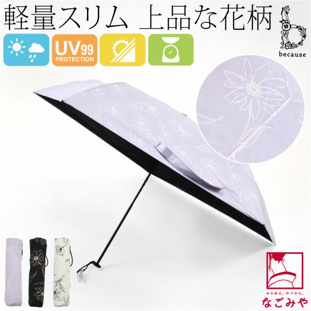 晴雨兼用 日傘 雨傘 通年用 because 折りたたみ傘 PUスーパーライト ラインフラワー ミニ 遮光 暑さ 熱中症 紫外線 UV 対策 軽量 おしゃれ 大人 レディース 女性10024081