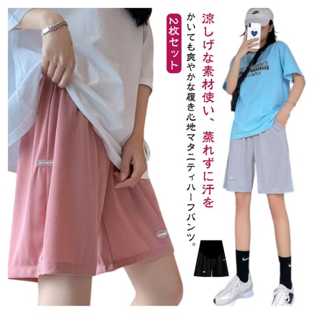 2枚セット マタニティウエア ショートパンツ 短パン ハーフパンツ 夏 レディース アイスシルク 涼しい 薄い 五分丈 半ズボン 接触冷感 カジュアル アジャスター ゆったり ボトムス 大きいサイズ 妊婦パンツ マタニティ 部屋着 ルームウエア 送料無料 M L XL 2XL
