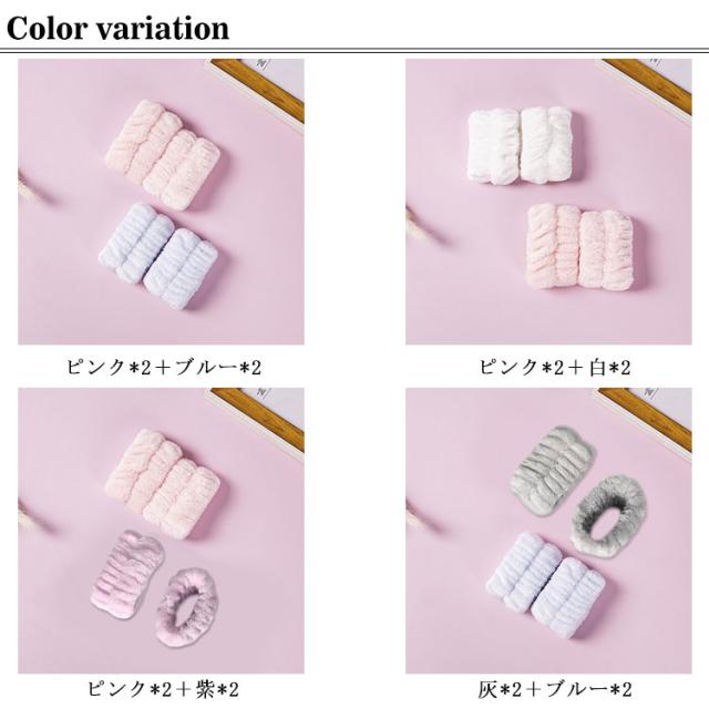 吸水リストバンド ふわふわ 2ペアセット おしゃれ 洗顔リストバンド 手首バンド かわいい 柔らかい 手洗い用 もこもこ 無地 お風呂上り シュシュ 袖濡れ防止 吸水タオル 柔らかい コンパクト 伸縮性 ヘアゴム 水仕事 台所 汗止め スポーツ 男女兼用 4個入