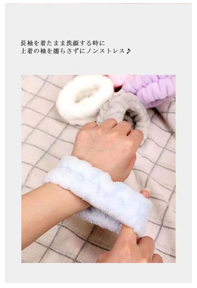 | 吸水性抜群!!洗顔が楽しくなる洗顔リストバンド。 伸縮性に優れているので、手首の太さに関わらず簡単に装着可能です。 毛足の長いマイクロファイバーでしっかり吸水するので安心して洗顔などお水を使う作業ができます。 長袖を着たまま洗顔する時に上着の袖を濡らさずにノンストレス♪ 毎日のルーティンが快適になる便利アイテムです。 | |