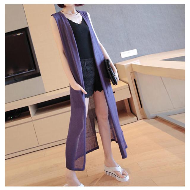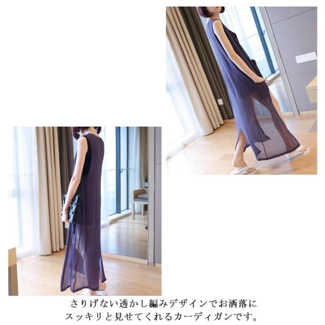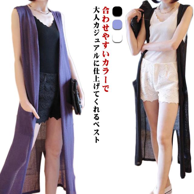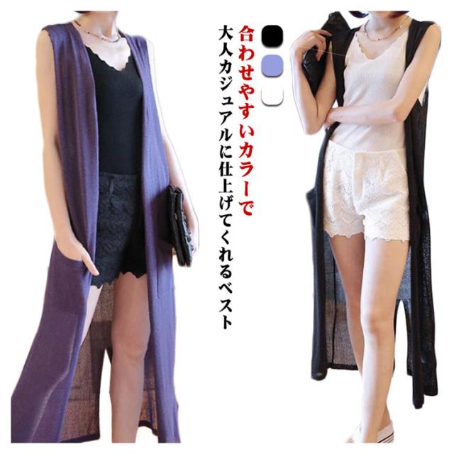ベスト ジレ ニットベスト 無地 チョッキ 薄手 ロング丈 袖なし マキシ丈 マキシ丈 体型カバー 大きいサイズ ゆったり サマーニット 薄手 透け感 前開き フェミニン 羽織り 紫外線対策 ノースリーブ 大人 女性 通勤 アウトドア お洒落 キレイめ シンプル