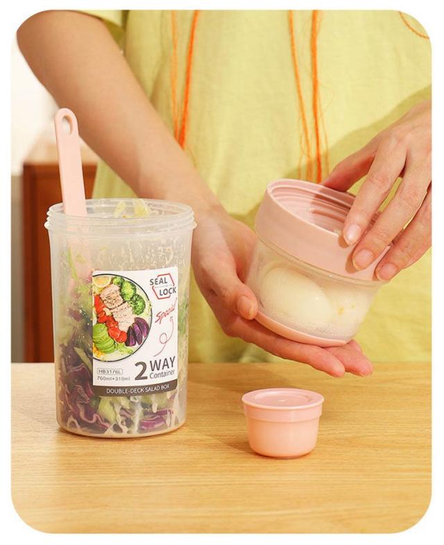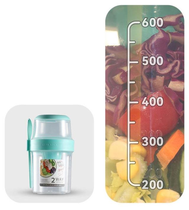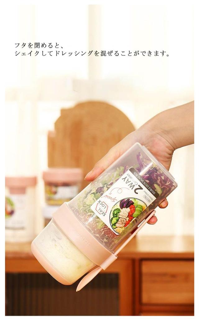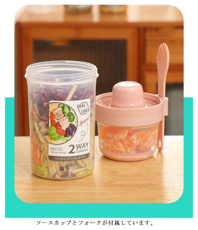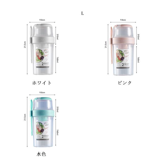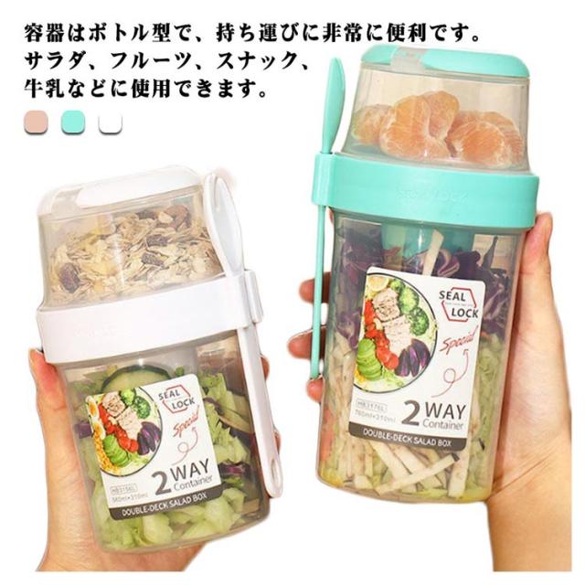 | 容器はボトル型で、持ち運びに非常に便利です。サラダ、フルーツ、スナック、牛乳などに使用できます。 ソースカップとフォークが付属しています。 容器の上部にはドレッシングを入れるカップが付いています。 フタを閉めると、シェイクしてドレッシングを混ぜることができます。 お弁当袋に入れやすいサイズ、ピクニックや外出先での使用に最適です。 持ちやすいコンパクトなデザイン。 各パーツは分解して洗えるので衛生面も安心。 | |