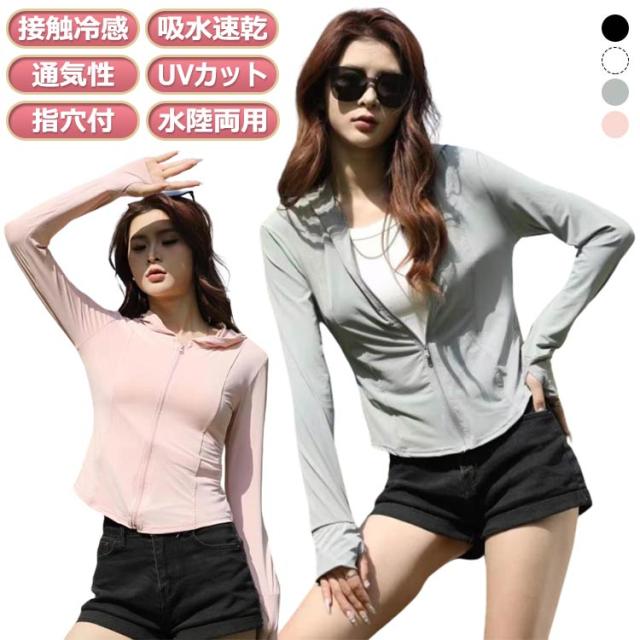 パーカー パーカー 冷感 レディース UPF50+ フードあり 上着 ラッシュガード 夏 涼しい uvカット 紫外線カット99% レディース UVカット 接触冷感 涼しい 普段着 アームカバー 帽子 レディース 体型カバー おしゃれ uvカット 長袖 指穴 手の甲まで 冷感