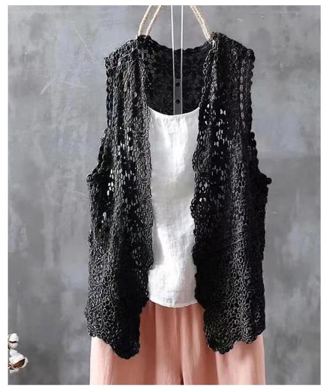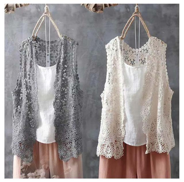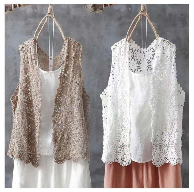 | 8colors 人気のコットンレース柄のシースルーニットベスト | |