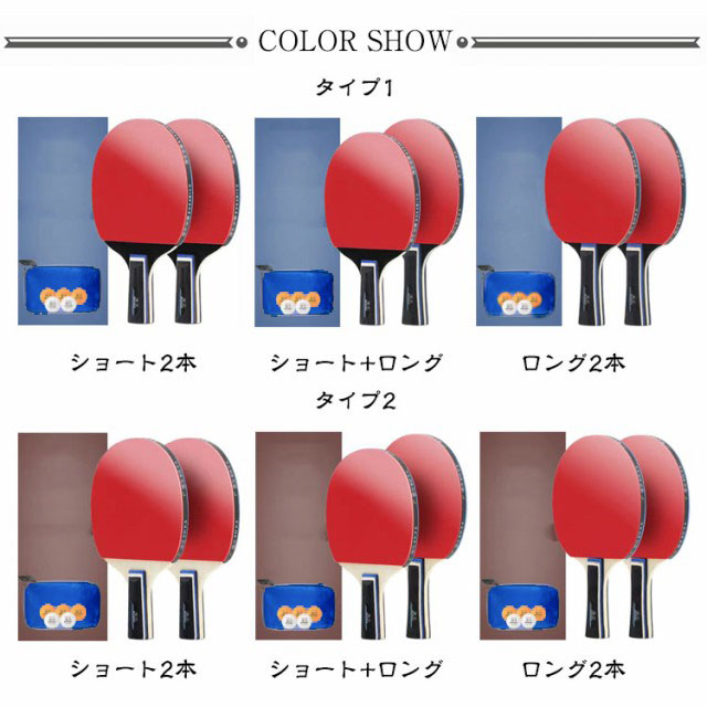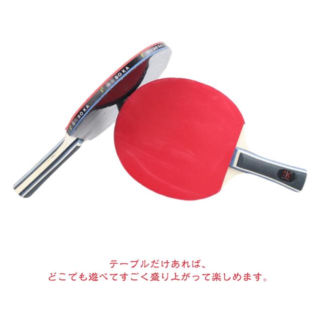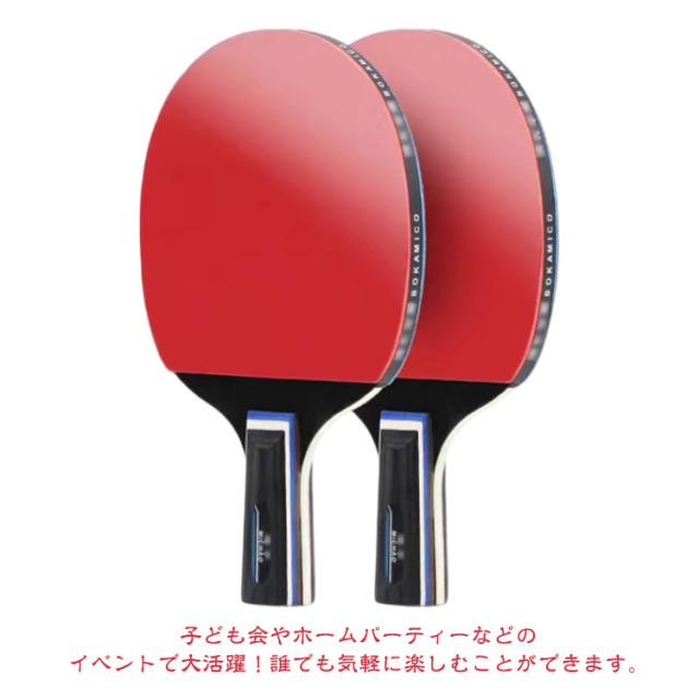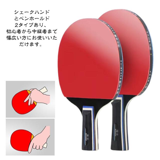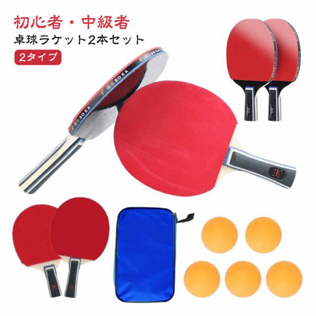 | 【卓球ラケット2本セット】【初心者・中級者】【2タイプ】 子供から大人まで幅広い方にご利用いただける卓球ラケットです。 セット内容:卓球ラケット2本、ボール3個、ラケットケース シェークハンドとペンホールド2タイプあり、初心者から中級者まで幅広い方にお使いいただけます。 ラバーは粘着性に優れたゴムと高弾性ウレタンを使用。 グリップは握り心地がよく、吸汗、速乾性に優れています。 テーブルだけあれば、どこでも遊べてすごく盛り上がって楽しめます。 子ども会やホームパーティーなどのイベントで大活躍!誰でも気軽に楽しむことができます。 収納袋を付属して、簡単に収納できるので、持ち運びにとても便利です。 | |