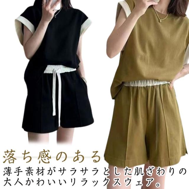 セットパジャマ 部屋着 セットアップ ショートパンツ ゆったり ルームウェア 半袖 カジュアル 夏 Tシャツ 上下セット 短パン リラックス セットアップ パジャマ ナイトウェア 寝間着 部屋着 寝巻 セットアップ リラックスウェア 無地