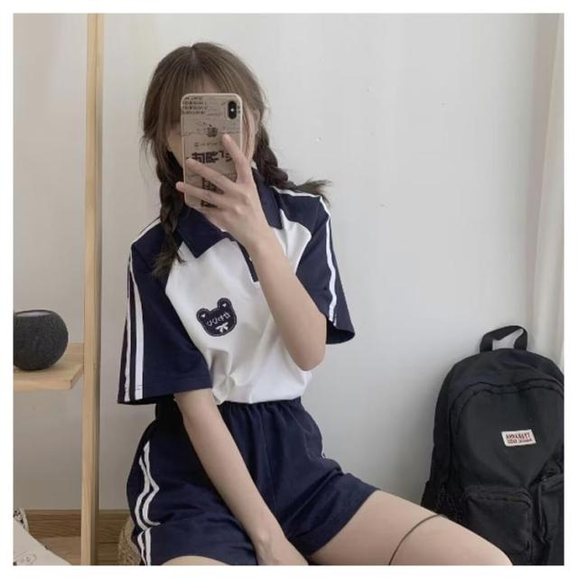 短パン ポロシャツ サイドライン リラックス 半袖 ライン入り スポーツウェア 上下セット ポロシャツ レディース カットソー ルームウェア ジャージ ショートパンツ 体型カバー 部屋着 夏 春 スウェットパンツ ブルー ネイビー