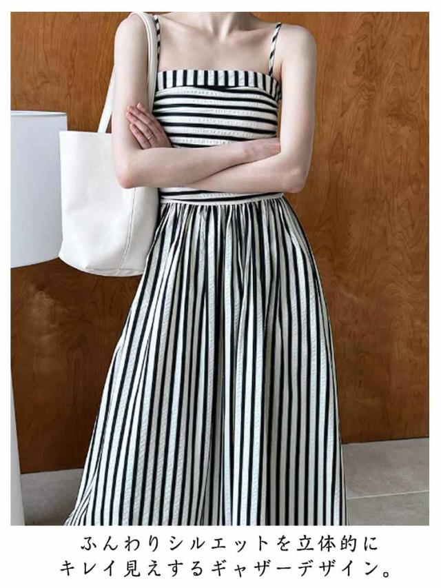 キャミワンピース スクエアネック キャミ ジャンパースカート キャミワンピース タイト サロペットスカート ロングワンピース ボーダー柄 キャミソール 切り替え ギャザー Aラインワンピース フレアワンピース きれいめ カジュアル 夏