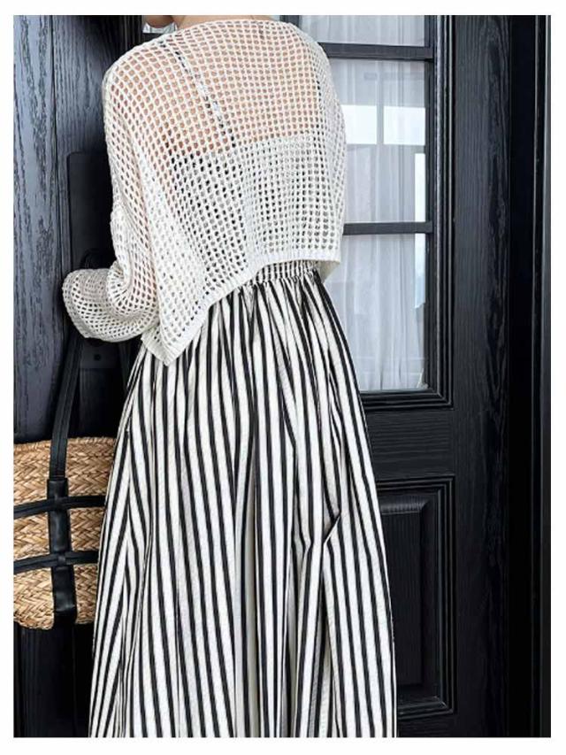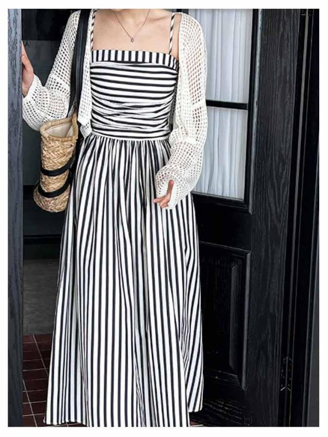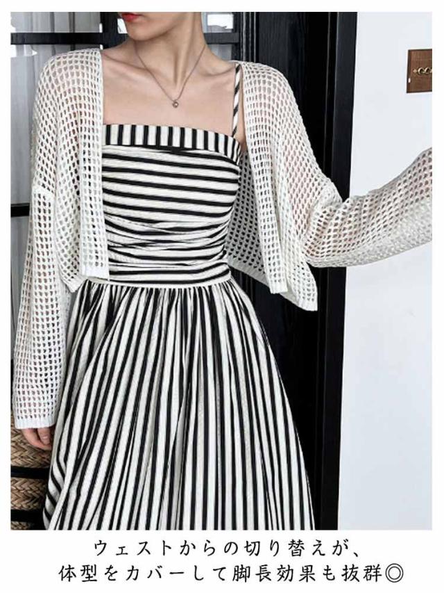 | リラックスムード漂うストライプ&ボーダー柄のキャミワンピース。 シンプルコーデも様になる女性らしさと表情豊かなシルエットです。 ふんわりシルエットを立体的にキレイ見えするギャザーデザイン。 裾に向かって広がるAラインが、フェミニンで女性らしさを引き立てます。 ウェストからの切り替えが、体型をカバーして脚長効果も抜群◎ ノースリーブワンピースでカーディガンが羽織りやすいのも嬉しいポイント。 汗ばむ真夏も快適に着用でき、ロングシーズン活躍してくれます。 | |