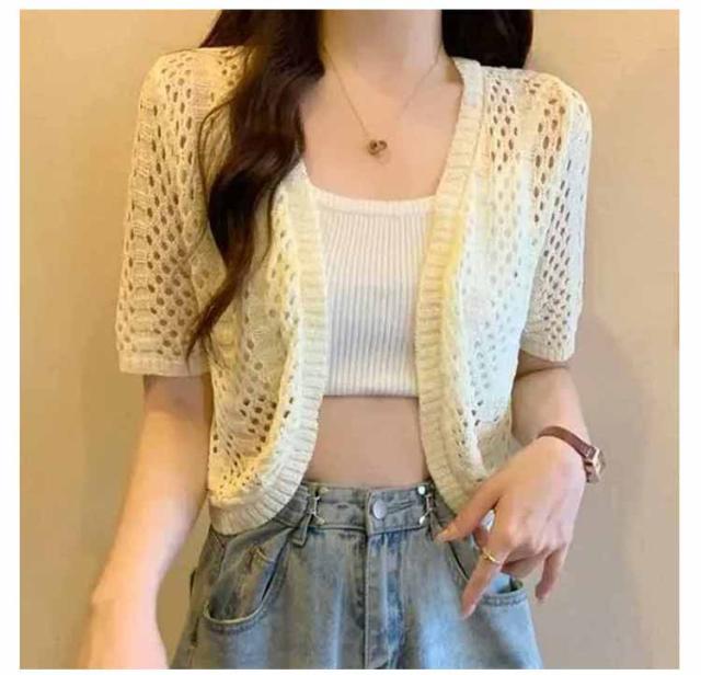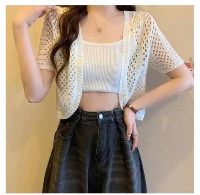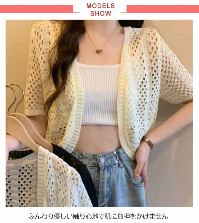 Vネック 羽織り カットワーク サマーカーディガン サマーニット サマーニット ボレロ 薄手 カーディガン 軽量 レディース ニット トップス 春夏 おしゃれ 透け 透け 羽織 薄手 ニットカーディガン 半袖カーディガン アウター 夏服 春夏秋 きれいめ 透かし編み