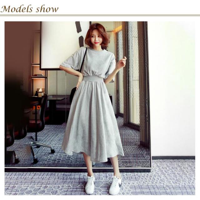 リゾートワンピース 韓国ファッション ロング レディース オシャレ ゆったり 春 ワンピース Tシャツ マキシワンピース 夏 大きいサイズ ドレス 着痩せ パーティー ロングワンピース クルーネック ワンピース 綿 きれいめ 体型カバー 送料無料