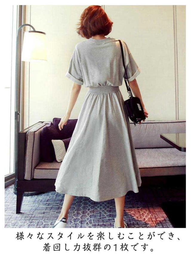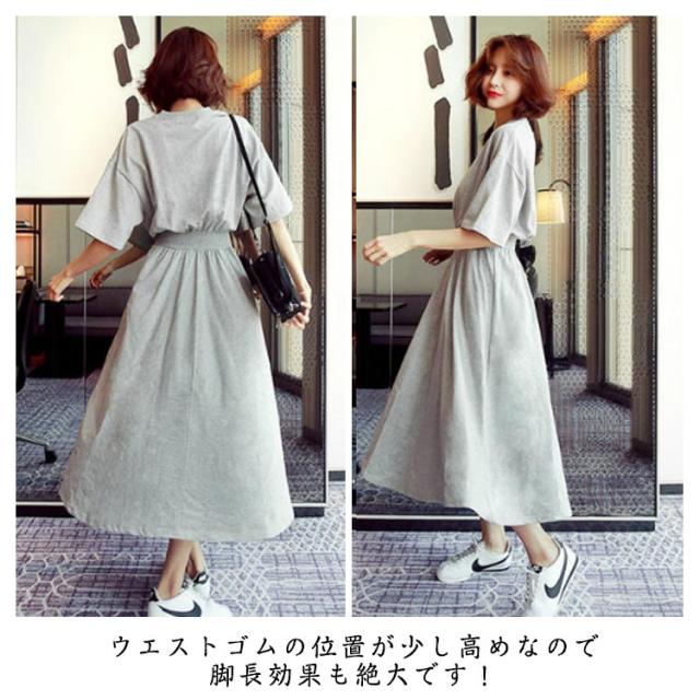 | M−2XL!カジュアルなデザインなのにどこか大人っぽいTシャツワンピースです。 様々なスタイルを楽しむことができ、着回し力抜群の1枚です。 ウエストゴムの位置が少し高めなので脚長効果も絶大です! | |