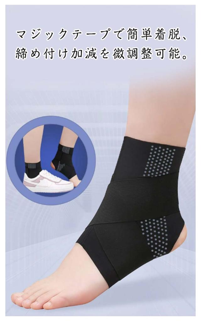 | 足首サポーター 男女兼用! クロスベルトで強力固定!簡単に装着できズレにくく、より安定したサポートが可能です。 洗濯洗いが可能なので、いつでも清潔に使うことができます。 マジックテープで簡単着脱、締め付け加減を微調整可能。 通気性に優れ長時間の装着でも蒸れにくくシーズン問わず快適にご使用になれます! 踵部分は足首がしっかり固定できるように、オープンヒールにしました。 怪我や捻挫などの歩行補助はもちろん、怪我の予防としての装着もおススメ。しっかり足首を固定し怪我なく日常やスポーツを楽しんでください。 | |