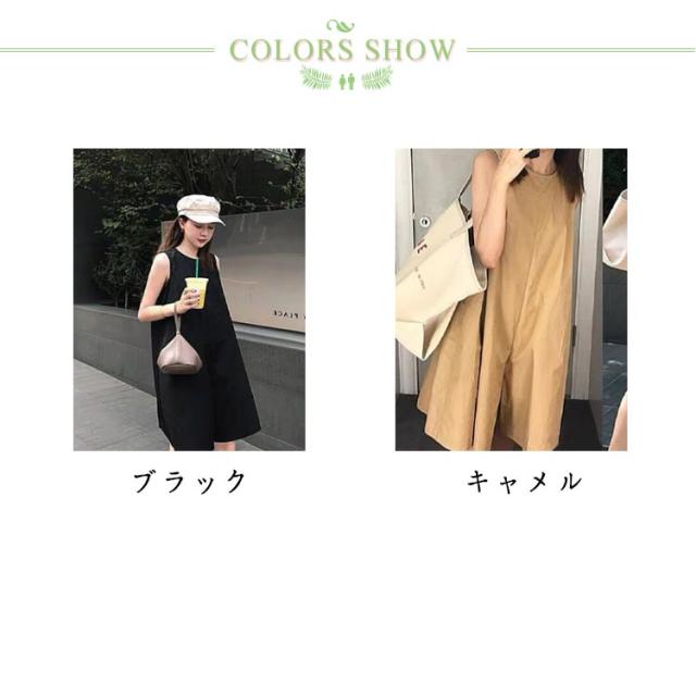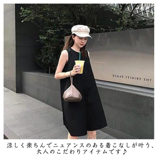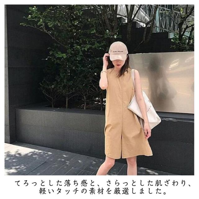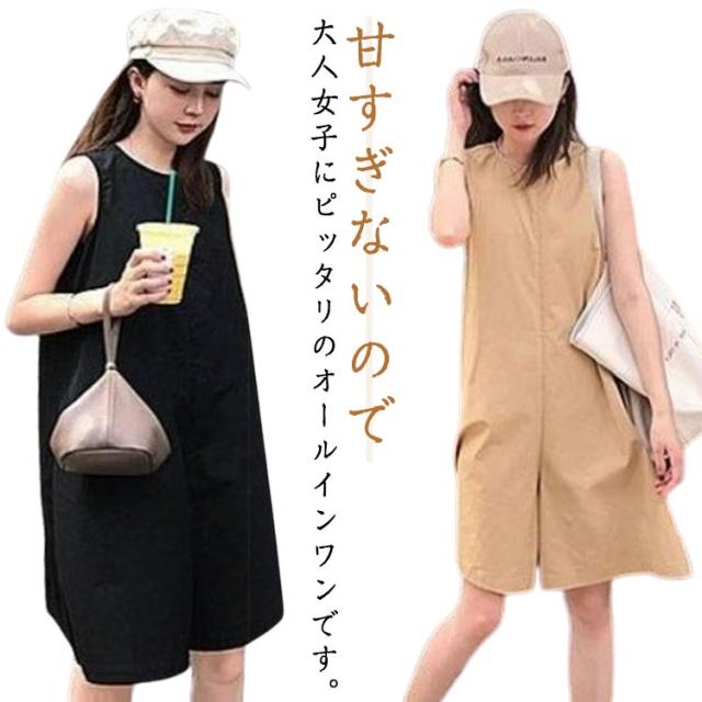 レディース サイドポケット オールインワン サロペ ポケット付き サロペット オーバーオール パンツドレス ノースリーブ ラウンドネック つなぎ 体型カバー ジャンプスーツ ポケット付き 着痩せ 体型カバー UVカット ノースリーブ