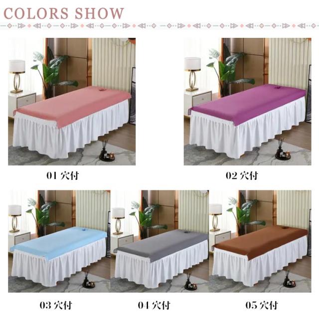 | 防水、防油機能付きのマッサージベッドシーツです。 無地なデザインで清潔感を演出します。 顔の呼吸穴付き&穴無しタイプが選べる! 柔らかい布の表面はあなたの顧客のための余分な快適感を提供する。 洗濯機で洗えますのでいつでも清潔。 全3サイズ、美容院、マッサージテーブル、ホテル、化粧用ベッド、病院など色々な場所を対応できます。 | |
