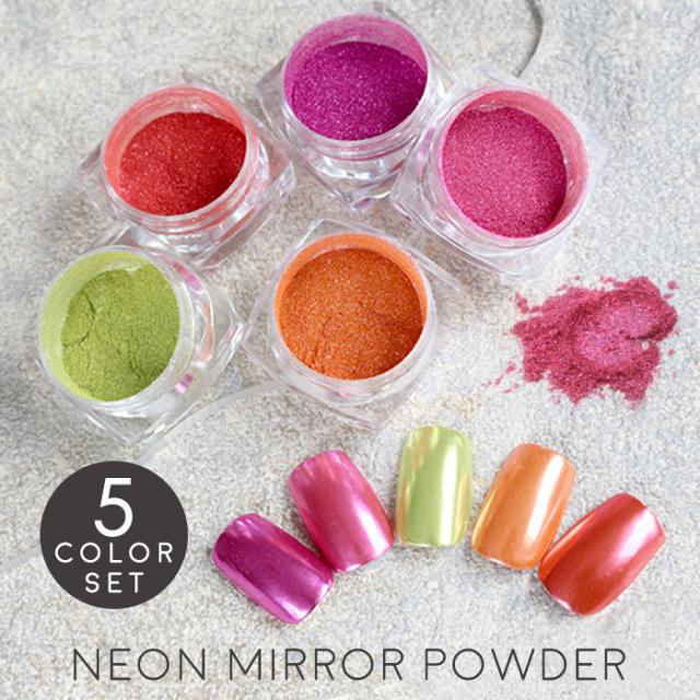 メール便 ネオンミラーパウダー5色セット レッド ピンク オレンジ グリーン ジェルネイル ジェル ネイル セルフネイル ネイル用品 ネオンミラーパウダー パウダー ネオンカラー ミラー ミラーネイル ニュアンスネイル