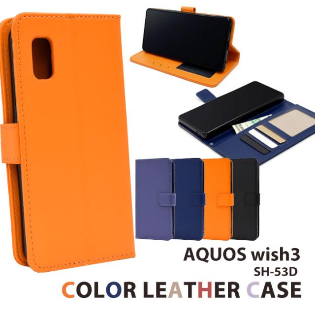 AQUOS wish3 手帳型ケース SH-53D A302SH A303SH SH-M25 ケース アクオスウィッシュ3 手帳カバー AQUOSwish3 手帳ケース カード収納 カバー 折りたたみ 手帳カバー シンプル ブルー ブラック ブルー オレンジ 送料無料