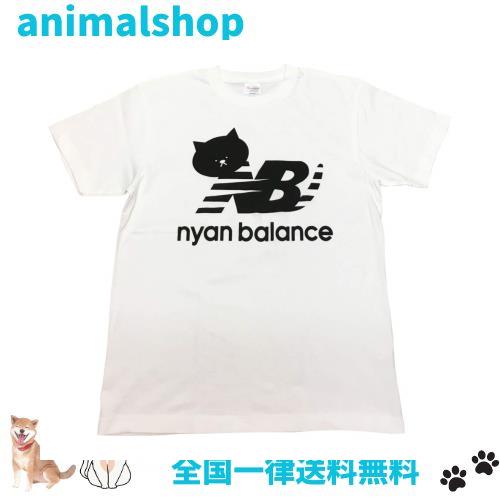 ニャンバランス 半袖 Tシャツ ブランド ネコ パロディー (Mサイズ, 白)