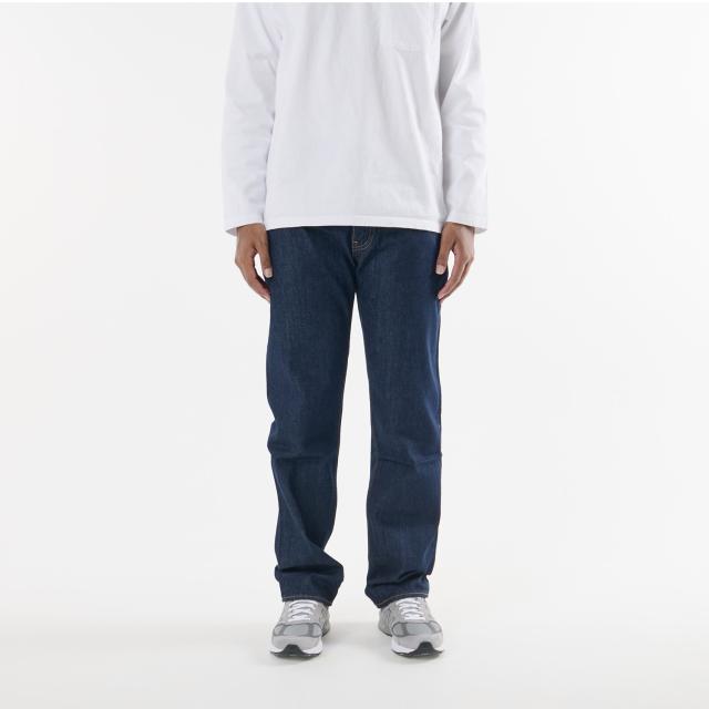 リラックス感のあるゆったりとしたストレートシルエットのパンツ。耐久性に優れた綿100%の生地、定番のリンスカラーが特徴です。幅広いスタイリングに合わせやすいのは勿論、経年変化を楽しみながら穿ける一本です。