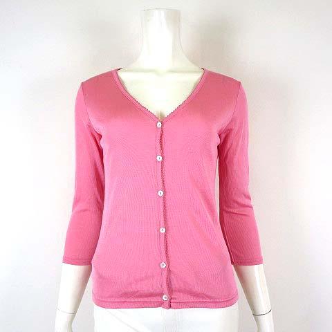 【中古】オリーブデオリーブ OLIVE des OLIVE カーディガン カットソー パイピング レース Vネック 7分袖 M 2 ピンク