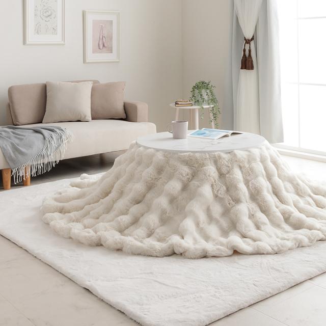 こたつ布団 円形 丸 こたつ掛布団 もこもこ 「 ラピアスプレミアム こたつ掛け毛布 」185cm丸 ふわふわ とろとろ 洗える おしゃれ かわいい コタツ布団 白 フェイクファー 省エネ 韓国インテリア 新生活