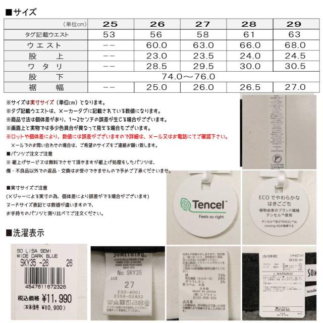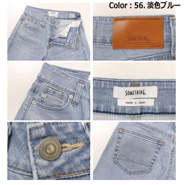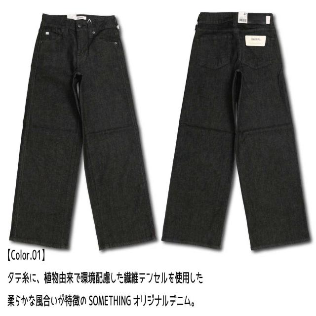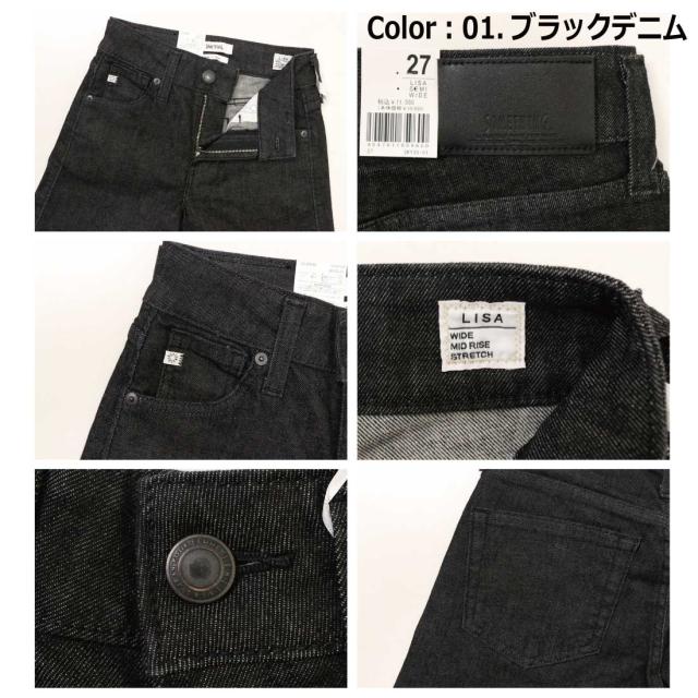 SOMETHING サムシング LISA セミワイド SKY35 デニム パンツ ジーンズ ワイドシルエット ストレッチ ミッドライズ 股上深め レディース