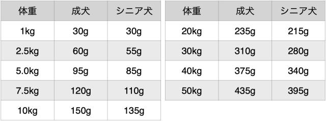・表を目安に体重や便の状態、毛ヅヤなどを見ながら適宜調節して下さい。