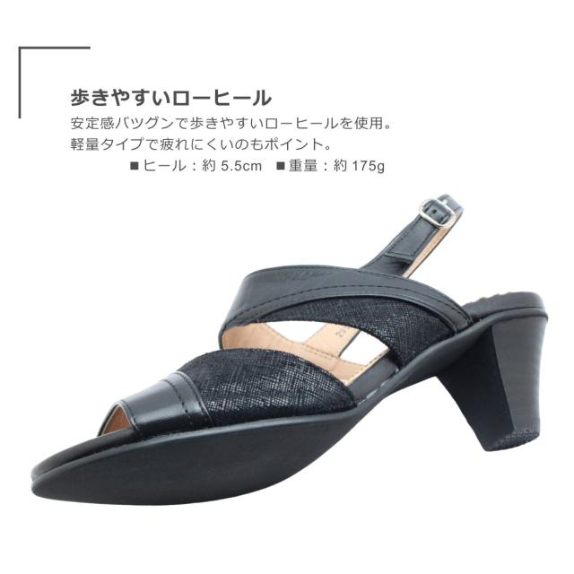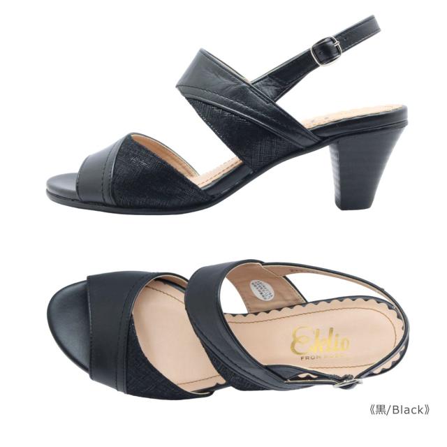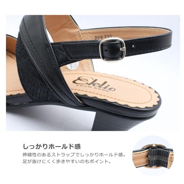 Eklio エクリオ レディース サンダル 299 ストラップ オープントゥ ローヒール 歩きやすい 軽い 軽量 日本製 靴 黒 ブラック グレージュ