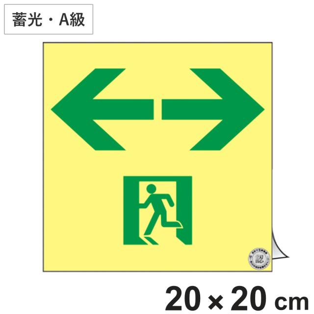 避難誘導ステッカー標識 「 ←非常口→ 」 高輝度蓄光 20×20cm A級認定品 ( 非常口ステッカー ステッカー 非常口標識 避難口 誘導 蓄光 A級 右左矢印 標識 防災グッズ 防災用品 蓄光タイプ 光る 日本製 )