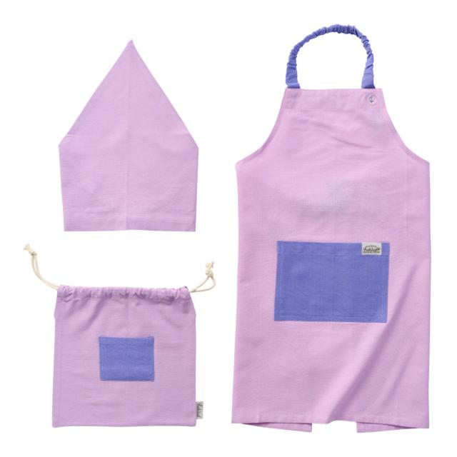 ●小学校中学年〜高学年(身長130〜150cm)のお子様向けのエプロン・バンダナ・巾着の3点セットです。
