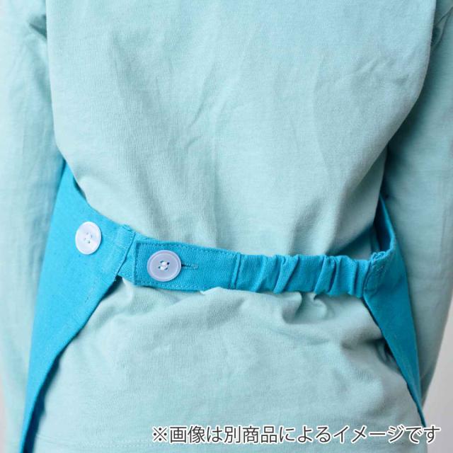 肩紐と背面はボタンタイプで、2段階に調節できます。一般的なエプロンのように後ろで紐を結ばなくていいのでお子様が自分で着用しやすく、紐がほどけたり引っかかってケガをする心配もありません。