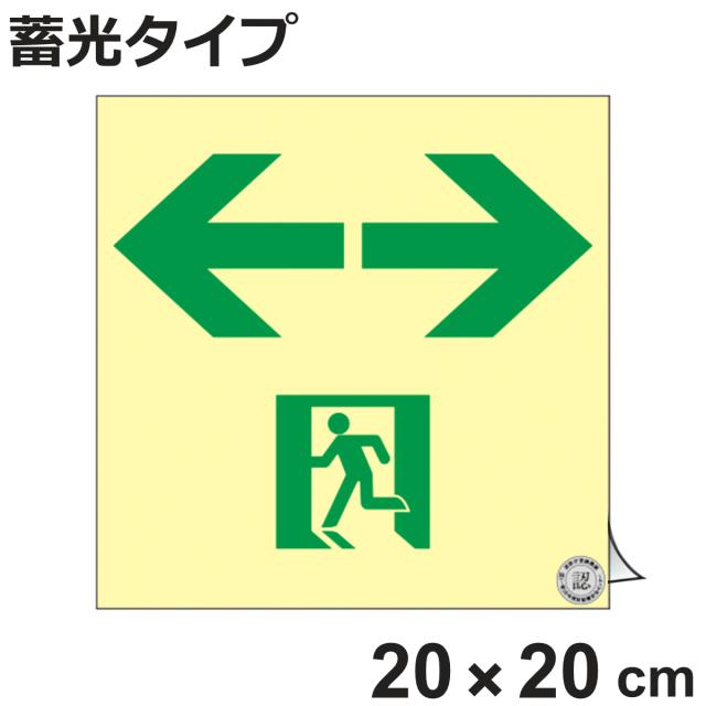 避難誘導ステッカー標識 「 ←非常口→ 」 中輝度蓄光 20×20cm 消防認定品 ( 非常口ステッカー ステッカー 非常口標識 避難口 誘導 蓄光 右左矢印 標識 防災グッズ 防災用品 蓄光タイプ 光る 日本製 )
