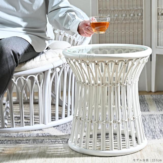 ホワイトラタン×ガラス天板 明るく魅せるサイドテーブル