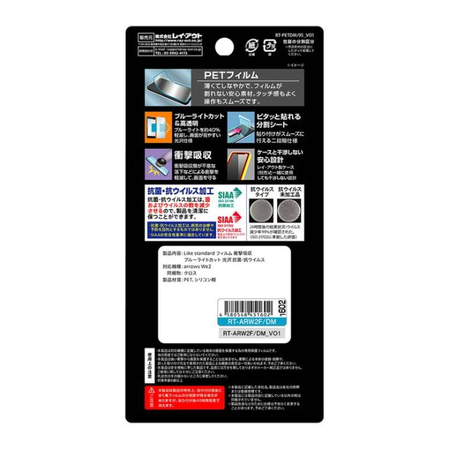 【目に優しく美しい】 arrows We2 フィルム ブルーライトカット 光沢 抗菌 抗ウイルス F-52E アローズウィー2 保護フィルム 指紋認証対応 透明 つや 清潔 FCG02