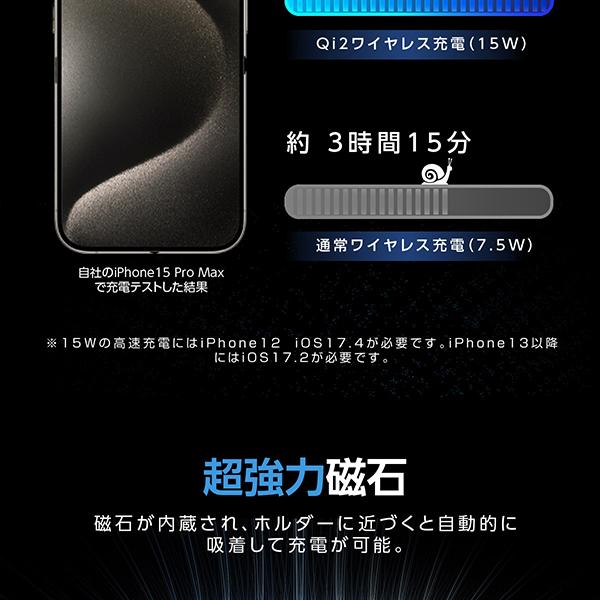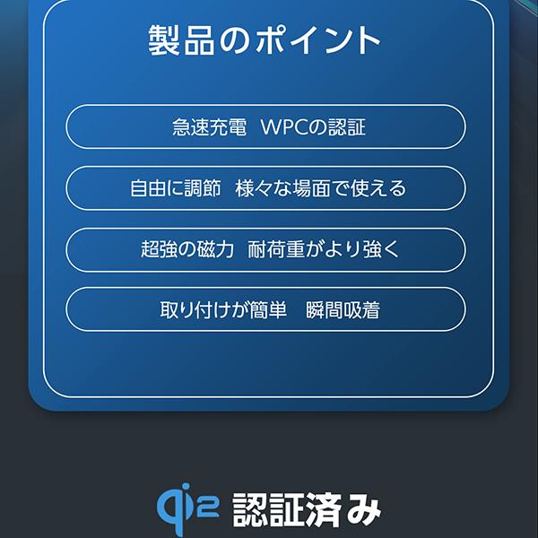 ・【急速充電】15Wの急速充電が可能です。・【超強力磁石】砂利道・ぬかるんだ道を走行中でもがっちりホールド!落ちる心配ナシ。