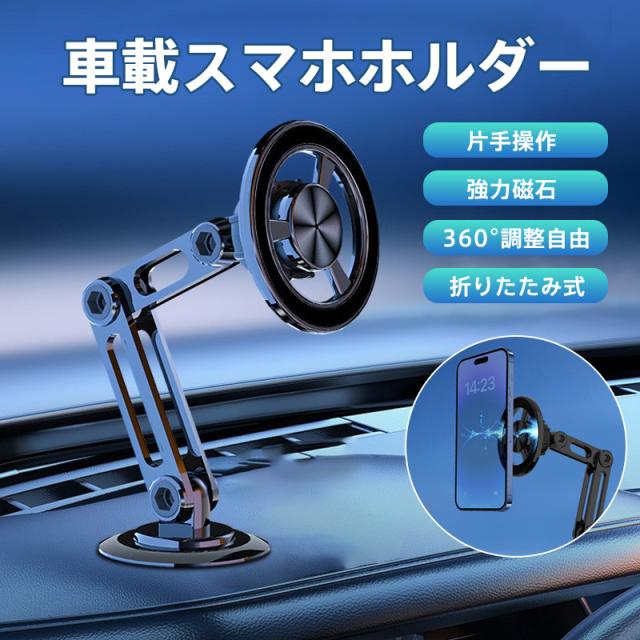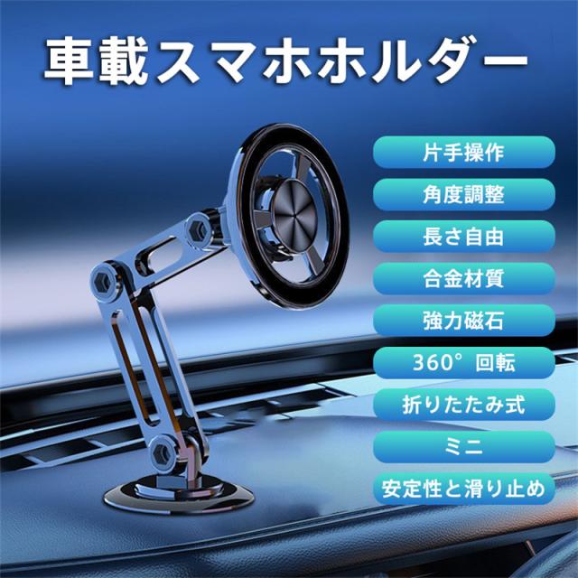 スマホホルダー 車載ホルダー スマホスタンド マグネット 超強吸着力 全方位回転 長さ伸縮可能 瞬間吸付 折りたたみ式 片手操作