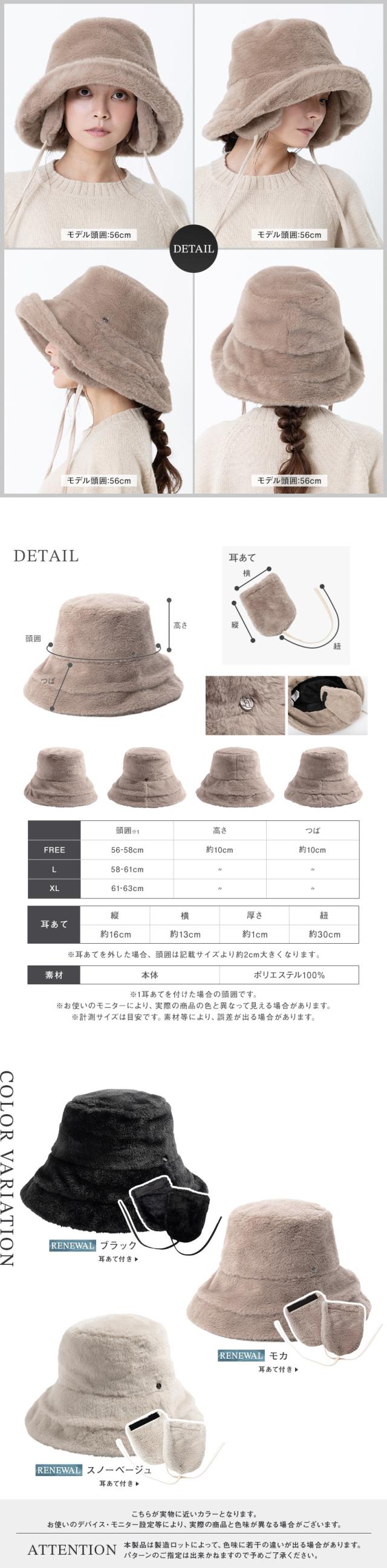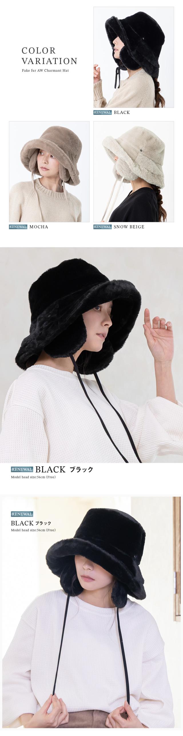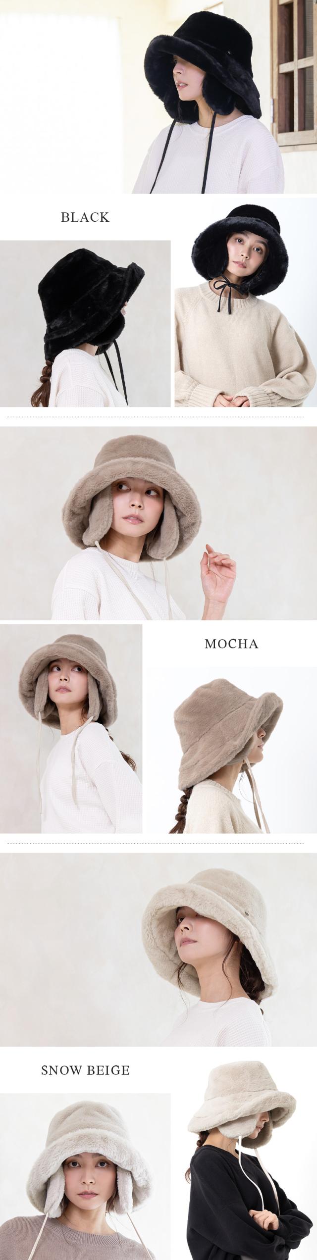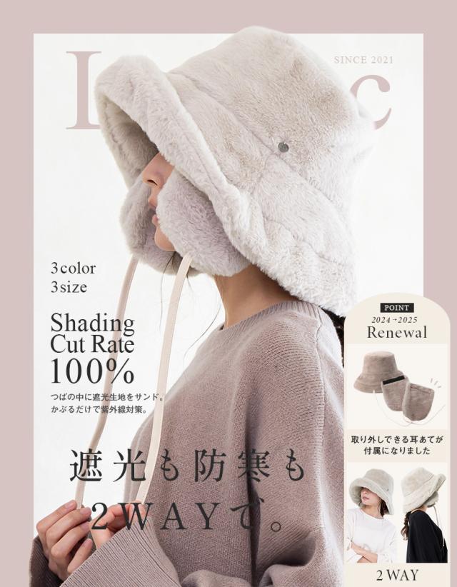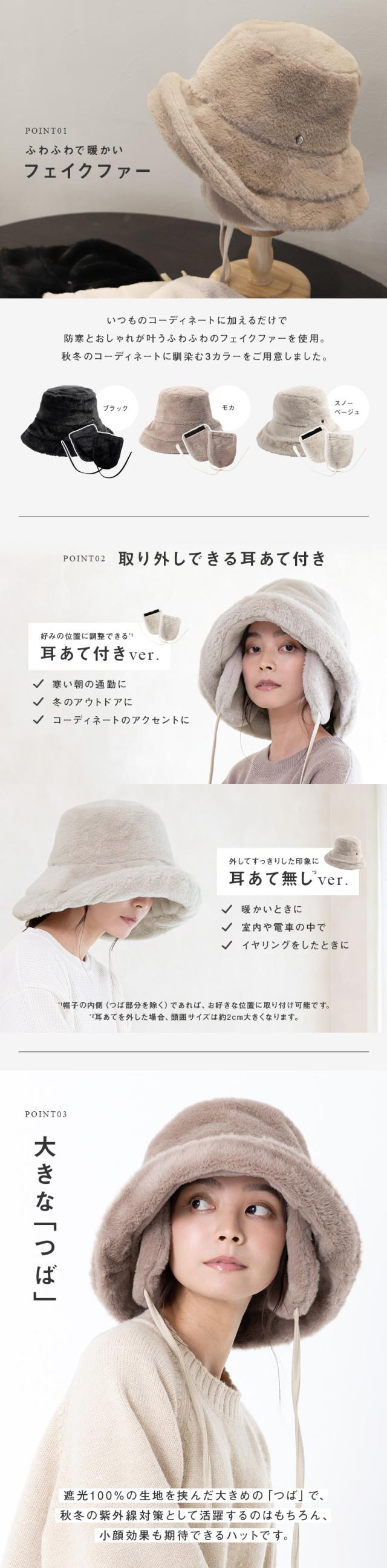 耳あて付きフェイクファーAWシャルマンハット(273) 帽子 レディース 大きいサイズ 完全遮光 遮光100% UVカット つば広 日よけ かぶーる日傘 フェイクファー 秋 冬 秋冬 防寒 耳当て 耳当て付き 56-63cm 2way 防寒