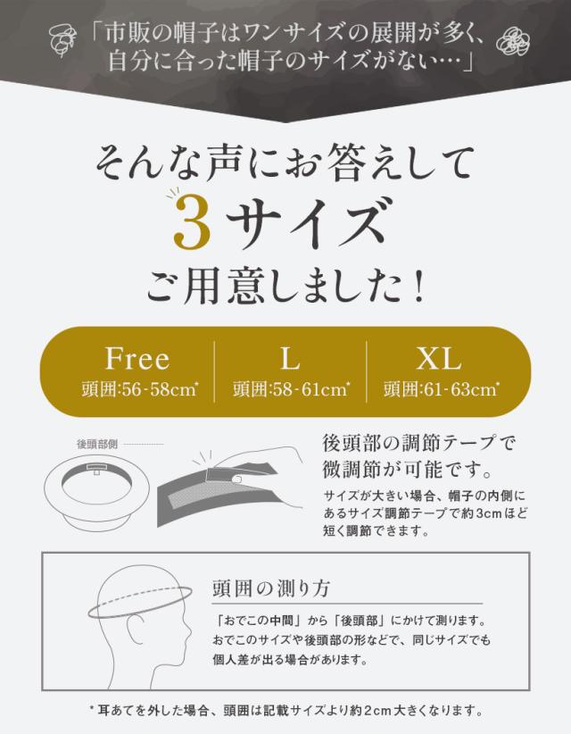 | ・高さはモデル着用時の高さを記載しています。 ・記載されている頭囲サイズは、耳あてを付けた状態の計測値です。 ・記載されている耳あてサイズは、耳あて単体の計測値です。 ・頭囲・高さのサイズ表記は、5ミリ前後の誤差が生じる場合があります。計測サイズは目安としてお考えください。 ・遮光生地の厚さには多少の差異があり、中にはシャカシャカと音がする場合があります。 ・お取り扱いの前に品質ネームタグの記載内容をご確認ください。 ・ご覧頂くモニターの発色具合によって実物と色が異なって見える場合があります。 ・商品単体の画像が実際の商品と色合いが近いものとなっておりますので、ご参照ください。 ・同商品でも、染色過程で色味が多少変わる場合があります。 ・後頭部の調節テープで微調節が可能です。 ・取り外し可能な耳あて付きです。 |