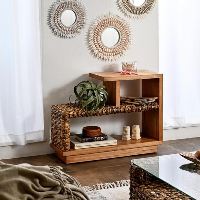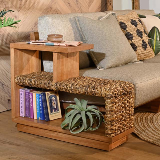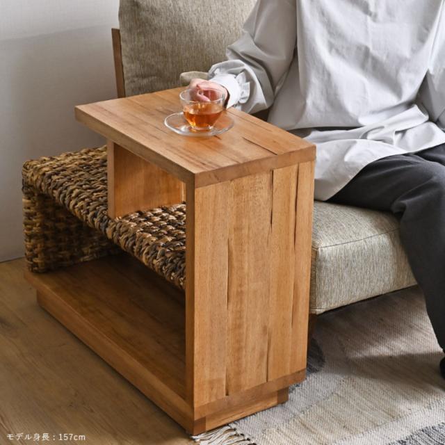 サイドテーブル 幅76cm バナナリーフ 天然木 OHANA ( ラタンテーブル テーブル ソファサイド ベッドサイド 天然素材 机 リビング カフェテーブル リビングテーブル 完成品 )