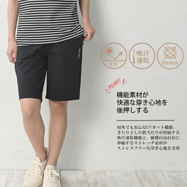 大きいサイズ レディース ハーフパンツ ミドル丈 メール便対応 UVカット ストレッチ ボトムス HEAD M/LL/3L/4L ゆったりサイズ ぽっちゃり女子 プラスサイズ