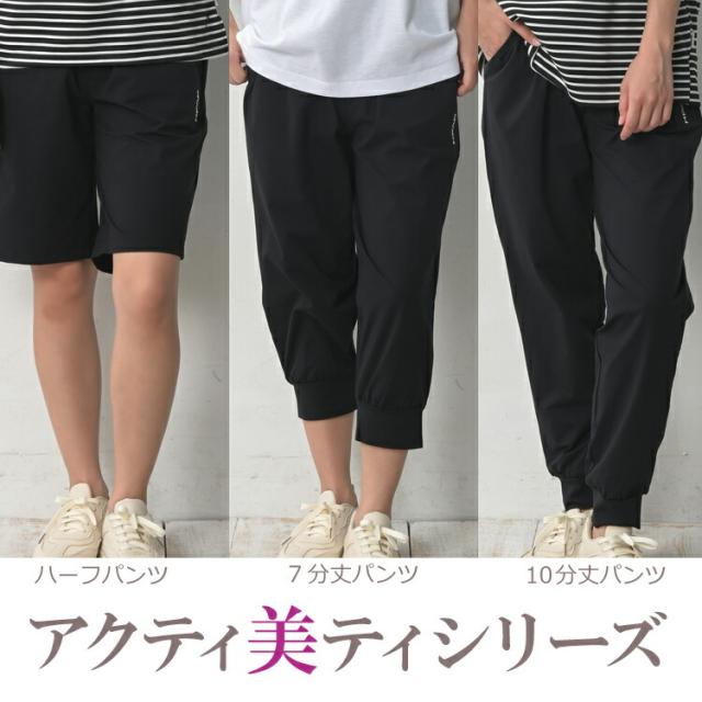 クセになるストレッチ素材の アクティ美ティハーフパンツ。 屋外でも安心なUVカット機能 さらりとした肌当たりが持続する吸汗速乾機能と 縦横自由自在に伸縮するストレッチ素材が ストレスフリーな穿き心地を実現します。 |